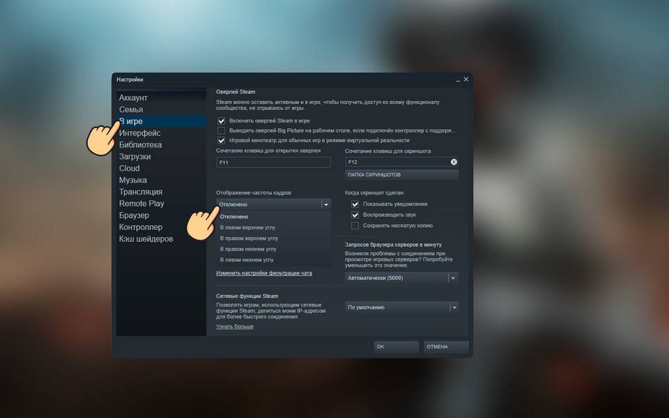 - Откройте меню настроек управления